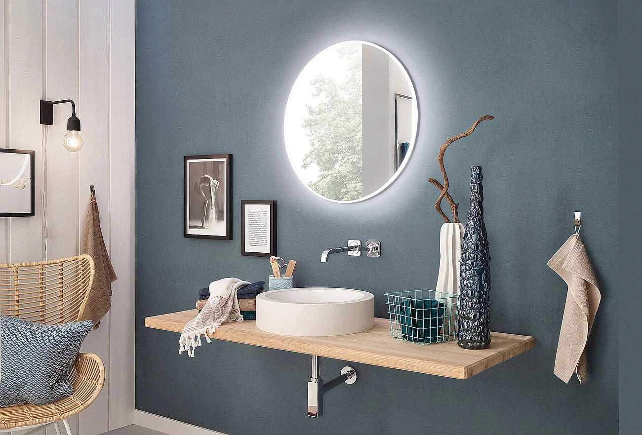 Wir halten ein breites Sortiment an Spiegeln sowie Glasarten und Glasstärken direkt bei uns im Haus bereit. So können wir flexibel auf jedes gewünschte Maß und jede Form reagieren. Die Glasbearbeitung erfolgt präzise nach Bedarf, vom Schleifen und Polieren bis hin zu Bohrungen.